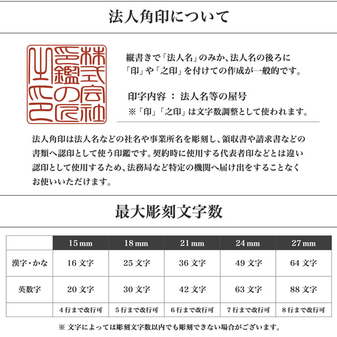 角印の語尾に入れる『印・之印』のご説明