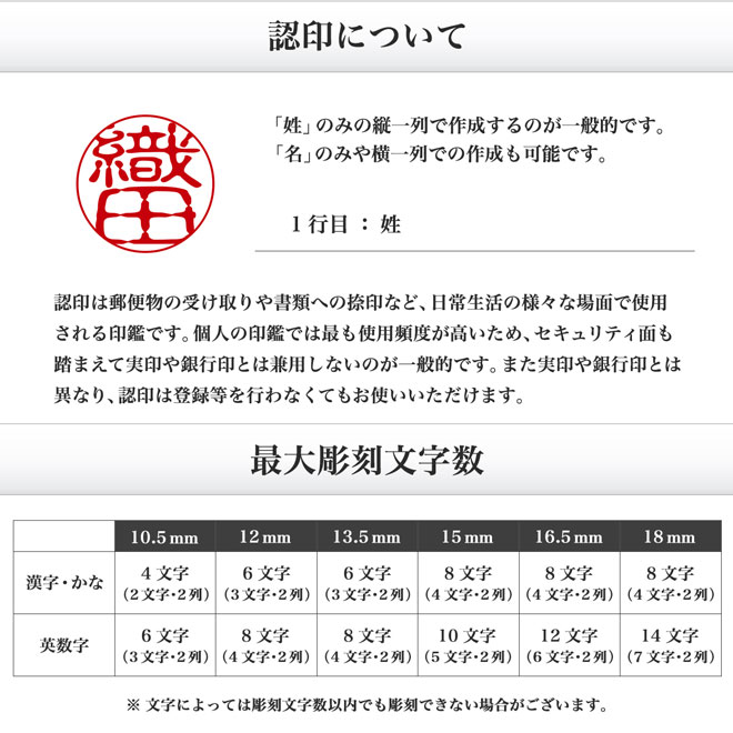 | 印相体 | 篆書体 | 古印体 | 隷書体 | 行書体 | 楷書体 |