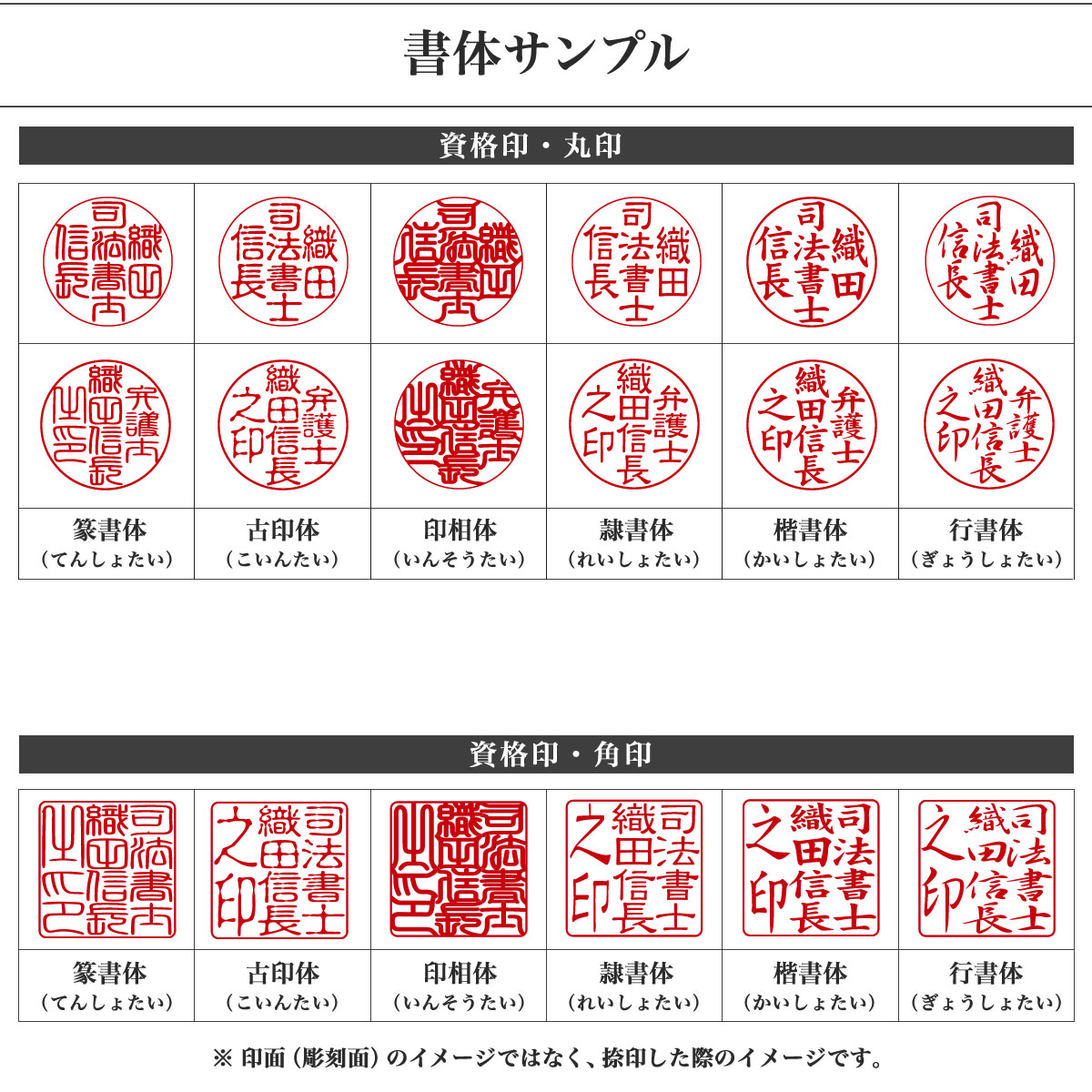 - 右から「資格名」(1行目)、『氏名』(2行目)、『之印』(3行目)での作成を推奨しています。