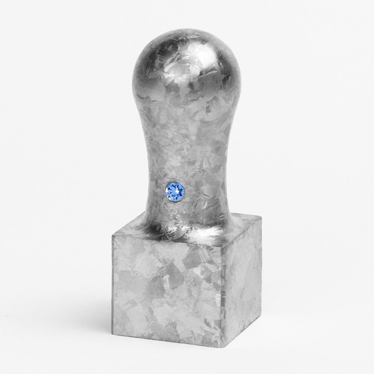 | 不規則な模様が生み出す光の反射が特徴的です。 | 印鑑の上側を示すクリスタルが付いています。 |