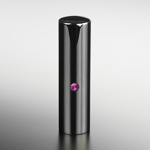 | スタイリッシュな光沢感が特徴的なブラックチタン。 | 無地だけでなく、印鑑の上側を示すクリスタル付きも選べます。 |